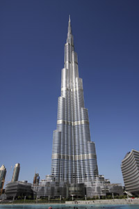 由斯基德莫爾奧因斯美林和(SOM )設(shè)計(jì)的迪拜哈利法塔采用束筒設(shè)計(jì)以及鋼與混凝土的復(fù)合,達(dá)到創(chuàng)紀(jì)錄的高度。束筒體系是使用一些互相連接的鋼管框架的系統(tǒng)。總共需要39,000噸鋼筋用于結(jié)構(gòu),15500平方米壓花不銹鋼用于裝飾。由于束筒體系的使用,該設(shè)計(jì)使用的鋼材量比例是帝國(guó)大廈的一半。迪拜哈利法塔融合了居住空間,商務(wù)套房,零售空間和阿瑪尼酒店等多種用途。