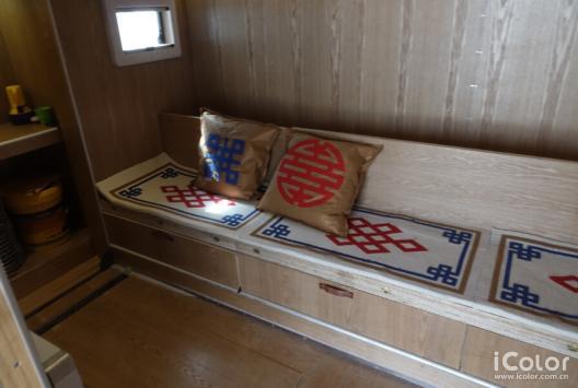 內飾——運用了蒙古傳統民族圖案及配色,選取當地常用的羊毛氈作為材料,極具地方特色風情,而給志愿者們創(chuàng)造出了家的感覺。