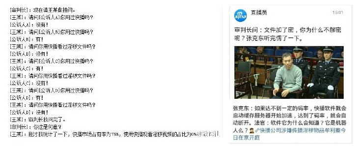 公訴人:用百度搜索淫穢詞+快播,搜索結(jié)果的吹超過4200萬的結(jié)果,可見快播在傳播淫穢視頻方面的巨大影響。王欣:這個(gè)沒有任何意義,您可以用百度搜素淫穢詞+QQ看有多少結(jié)果。辯護(hù)人和王欣的戰(zhàn)斗力十足,這是要把馬化騰和李彥宏都拉下水的節(jié)奏。 還有陌陌和淘寶也不幸躺槍。