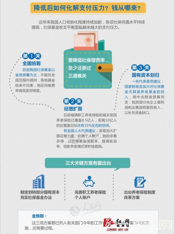 當(dāng)前,我國社保包括基本養(yǎng)老、醫(yī)療、失業(yè)、工傷、生育五大險種,繳費率合計為39.25%。適當(dāng)降低社保繳費率的空間在哪里?降低后如何化解社保支付壓力?戳圖了解——