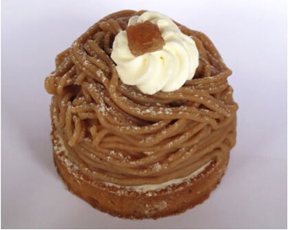 蒙布朗直譯過來就是白色的山。所以這種甜品的頂部總是帶著一小塊純白的奶油,如同雪霽后的山峰。不過也有一些改良后的將奶油拿掉了,滿滿一口甜栗子蛋糕,果腹感很好,吃完不想和人吵架。