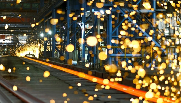 武鋼搶抓國內(nèi)高鐵新一輪大發(fā)展的市場機(jī)遇,開足馬力組織生產(chǎn)。10月11日,記者在武鋼條材總廠大型分廠軌梁生產(chǎn)線獲悉,截至9月該廠生產(chǎn)百米重軌46.17萬噸,實(shí)現(xiàn)盈利1.3億元 ,超計劃完成全年目標(biāo),目前正向月產(chǎn)重軌7.4萬噸沖刺。圖為10月11日該廠的百米重軌生產(chǎn)現(xiàn)場。(作者:朱旺春 單位:武鋼)
