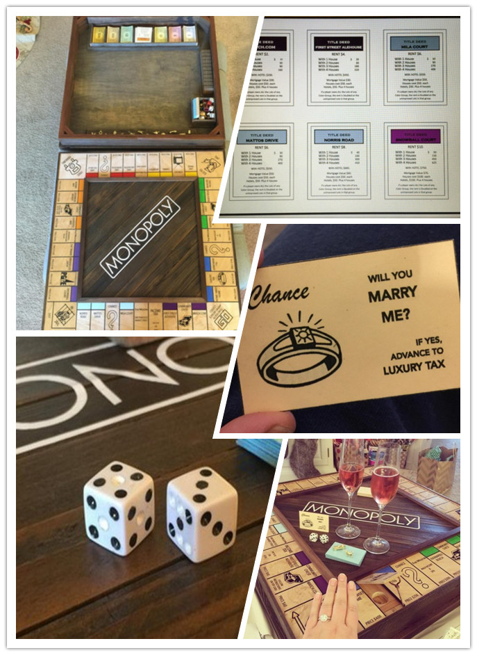 賈斯汀(不是那個比伯...)和女票米哈爾從高中時代就是桌游“大富翁”的腦殘粉。他打算送給米哈爾一個新的大富翁棋盤,并借此向她求婚。這個大富翁棋盤絕壁是世上最獨一無二的,因為它不是買的,而是賈斯汀花了三周時間親自設計,并拜托做木匠的好基友打造而成,上邊的各種地名全是他和女票一起長大或者去過的地方。為了確保求婚成功,他特意在游戲中設計了一張機會卡,對應棋盤的第七格,上面寫著“你愿意嫁給我嗎?”又為了確保女票能在游戲中將骰子順利擲出“7”,他更是想了一個讓人哭笑不得的主意,見下圖左下角。于是女票就像掉入陷阱的小羊,妥妥地被賈斯汀套牢啦。其實這叫投其所好,如果你的女朋友熱衷于密室逃生的腦殘粉,就設計一場密室逃脫游戲?qū)⑺卫卫ё“伞?/span>